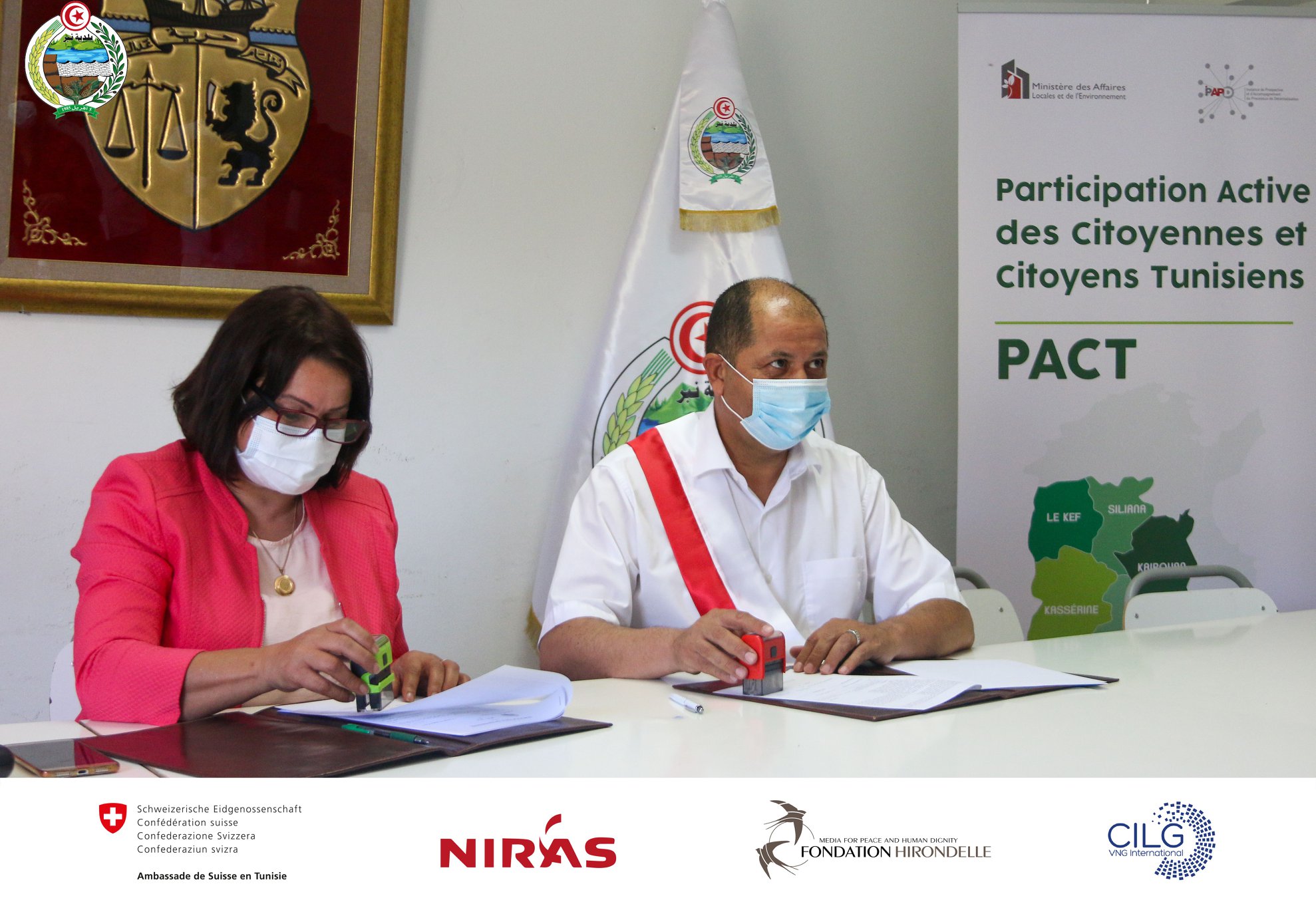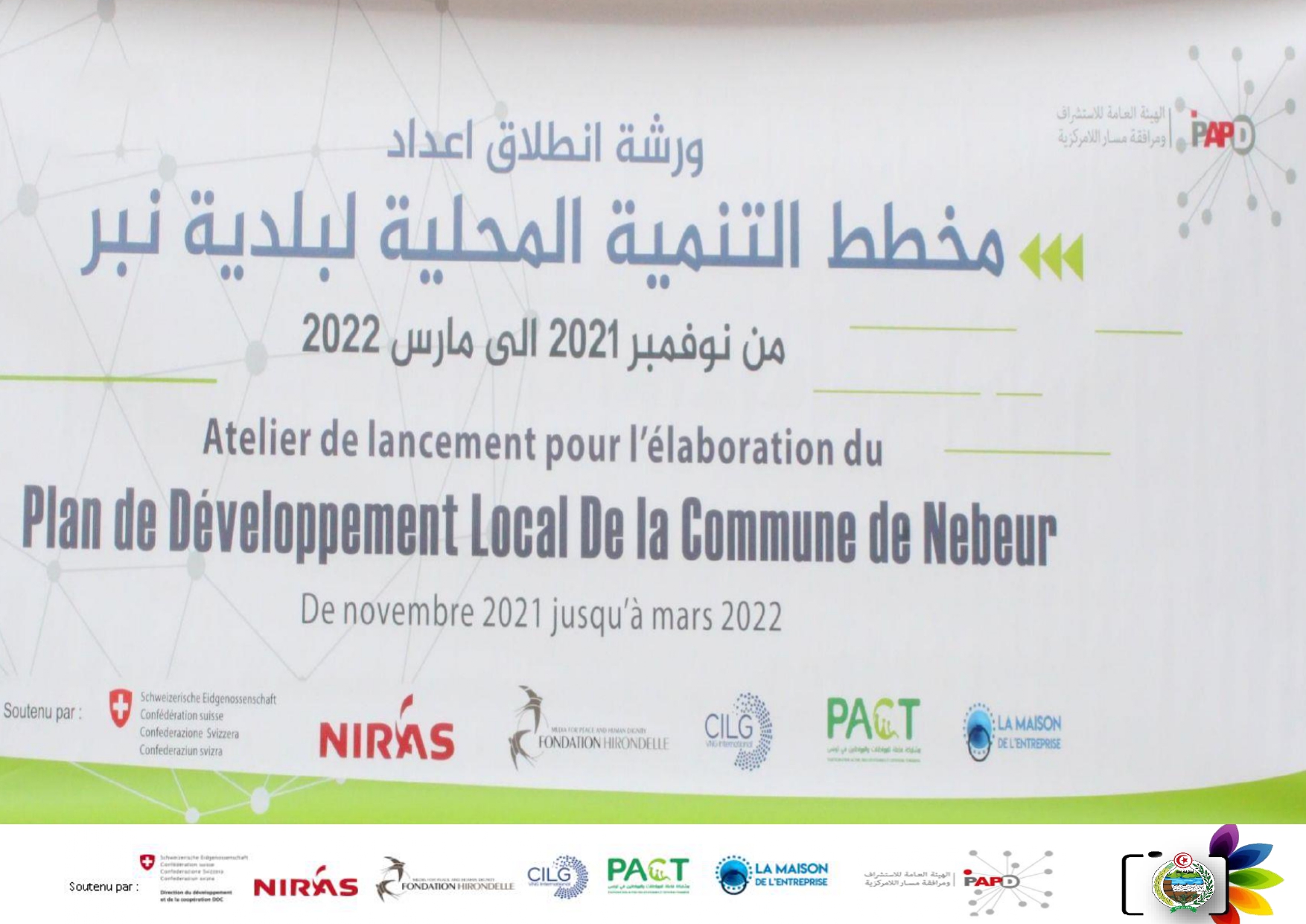 فعاليات جلسة توقيع اتفاقية الشراكة بين بلدية نبر والهيكل المخول لإدارة مشروع (باكت) الممول من قبل التعاون السويسري، والذي تمثله السيدة جليلة بوكاري، يهدف المشروع الى تنفيذ الاعمال التحضيرية والمصادقة على تمويل المشاريع من قبل الطرفين وتعزيز قدرات البلدية لتحقيق حوكمة وتنيمة مستدامة وفعالة