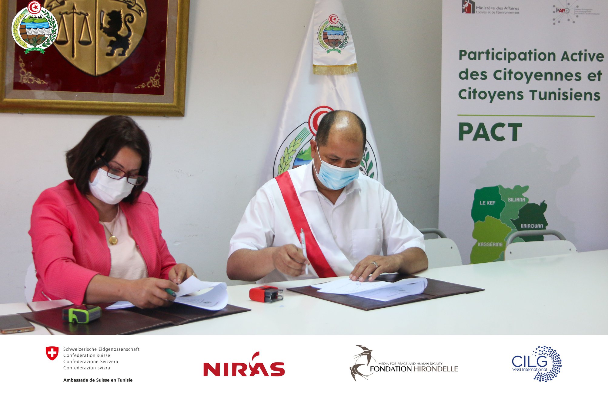 امضاء اتفاقية شراكة بين بلدية نبر الممثلة في شخص رئيس البلدية السيد رمزي الدشراوي والشريك المتمثل في الجمعيات صاحبة المبادرة وهي على النحو التالي